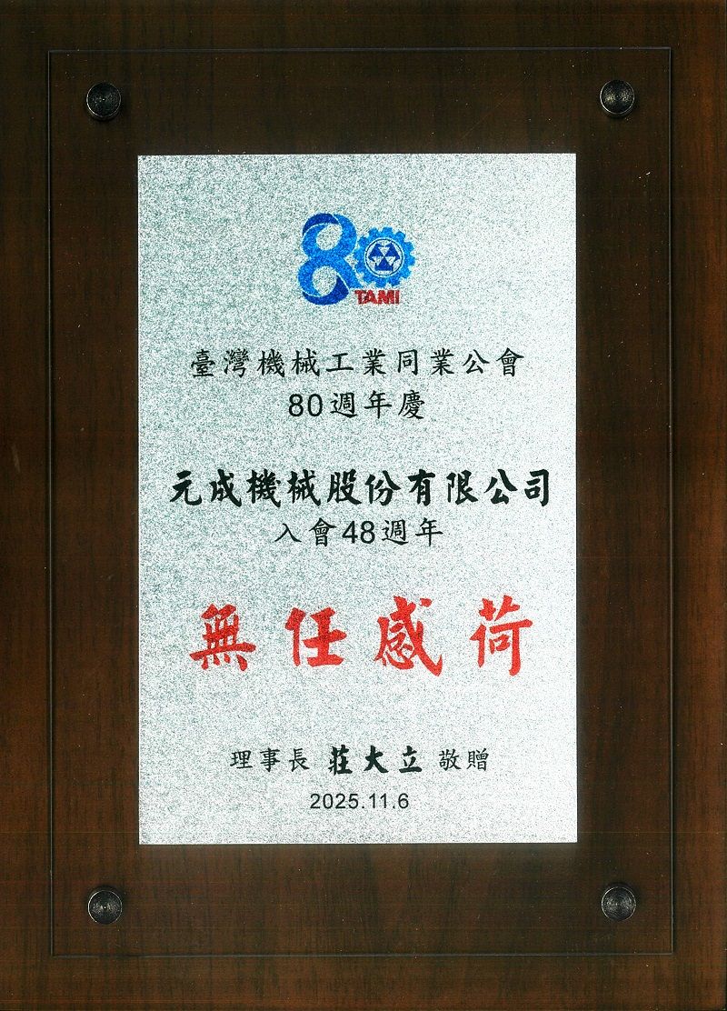 On November 6, 2025, YENCHEN Machinery received an Appreciation Plaque from the Taiwan Association of Machinery Industry (TAMI). The plaque recognizes the company’s long-term support for TAMI initiatives, active participation in industry activities, and continuous contributions to Taiwan’s machinery and pharmaceutical equipment sectors.This year marks the 80th anniversary of TAMI as well as the 48th year of YENCHEN’s membership. Since its establishment, YENCHEN has upheld its core values of pursuing excellence, customer satisfaction, talent development, and sustainable operation. Guided by these principles, the company has continued to deepen its expertise in the development and manufacturing of biotech and pharmaceutical equipment, providing professional technology and comprehensive services to support industry growth.Looking ahead, YENCHEN Machinery will continue collaborating with partners both domestically and internationally to advance equipment technology, bringing greater value to Taiwan’s manufacturing sector and the global biopharmaceutical market.