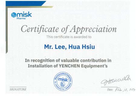 Untuk mengungkapkan penghargaan mereka atas layanan profesional kami, pelanggan memberikan sertifikat penghargaan kepada anggota tim kami, mengakui kontribusi luar biasa mereka selama proses instalasi.